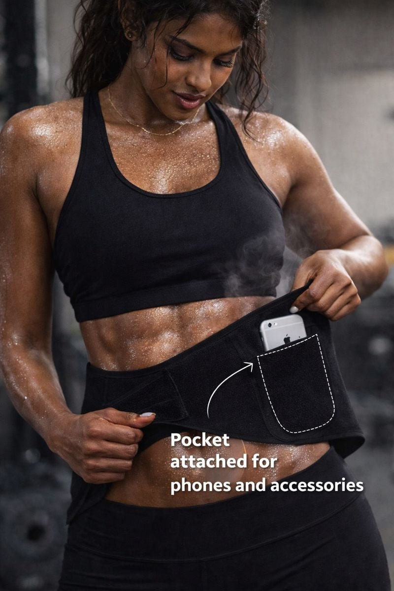 • It helps retain heat around the core abdominal area, encouraging increased sweating while you move, walk, or exercise.